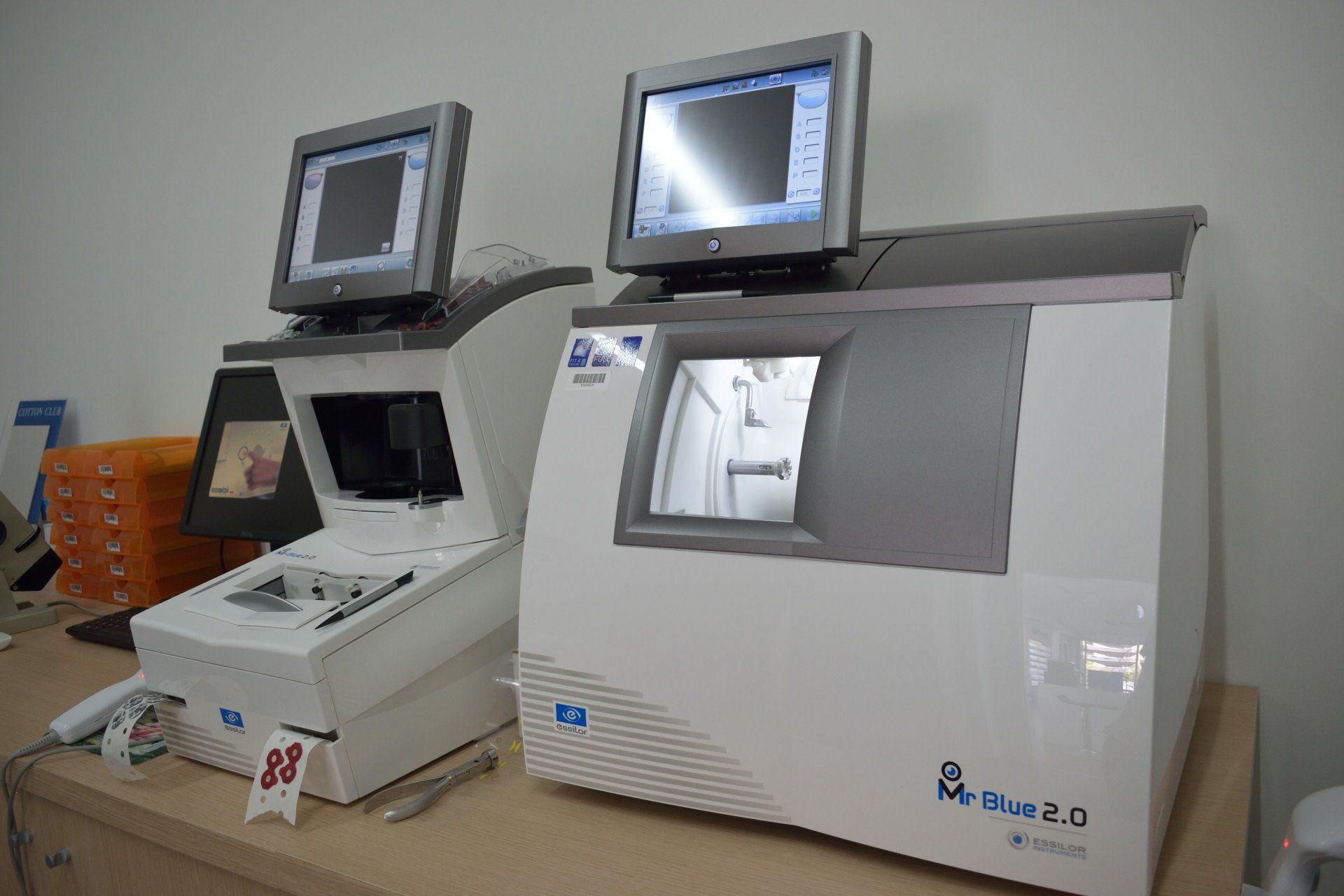 Grazie a un sistema computerizzato Essilor Mr Blue 2.0, dotato di una fresa di alta precisione, è possibile tagliare e modellare anche lenti per pazienti con elevate diottrie. In questo modo possiamo ridurre considerevolmente i tempi di assemblaggio dell’occhiale, concentrandoci sulla riuscita di un prodotto di qualità e con un alto risultato estetico.